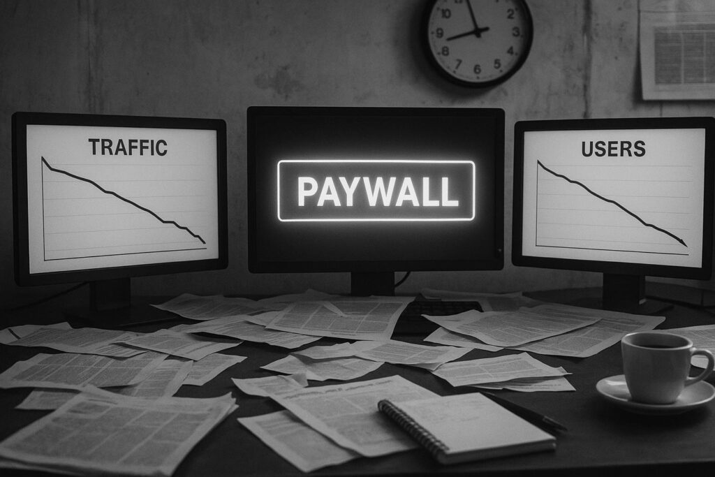 ✅ The core claims (BBC introduced a US paywall end‑June 2025; many major news sites saw traffic declines in July 2025 by Similarweb estimates) are plausible and corroborated by multiple independent reports (Reuters, Guardian, Press Gazette, The Verge, Nieman Lab). ✅ The mechanism proposed (paywalls + AI‑driven search answers + social algorithms = lower clickthroughs) is consistent with widely reported industry analysis and commentary. ⚠️ However, exact numeric magnitudes (specific visit counts and percent changes) depend on Similarweb’s estimation model and may differ from other measurement providers (Ahrefs, Comscore, internal publisher analytics). If the narrative presents precise numbers as definitive, treat them as estimated figures with methodology caveats. ⚠️ The narrative’s claim that “roughly 60 million BBC users are in the United States” is repeated in multiple reports citing BBC/press releases; it is plausible as a BBC‑provided figure but should be verified directly against the BBC announcement for exact phrasing and date. ⚠️ No contradictory reputable coverage was found that wholly undermines the central claims, but the synthesis nature and reliance on third‑party estimates mean the piece should be treated as informed analysis rather than airtight empirical proof.