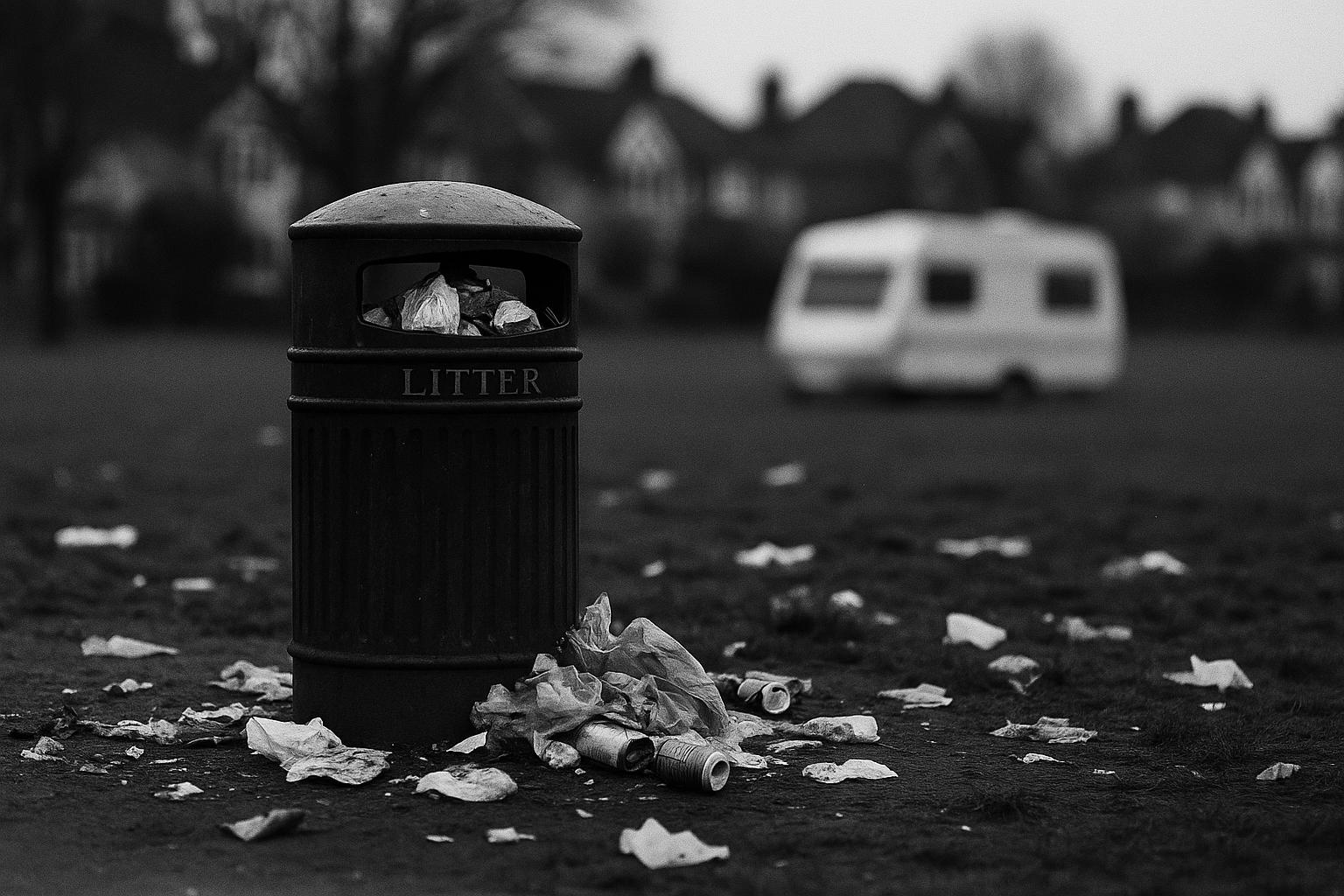 Photographs and local testimony describe waste piled on the grass adjoining the common and refuse scattered along the pavement. Neighbours complained that park bins were too small to cope with the volume of rubbish and accused the occupants of failing to clear up after themselves, a grievance that has been voiced repeatedly in previous incursions.